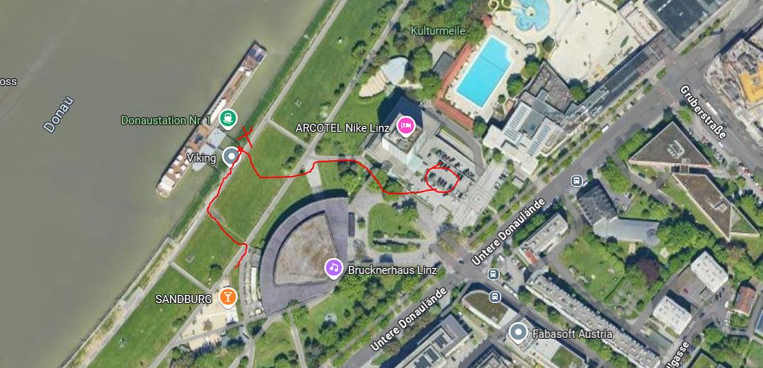 Parken: entlang Donaulände (Kurzparkzone) oder Arcotel Nike Parkplatz